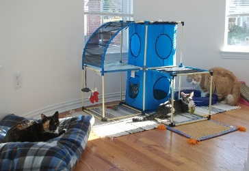 写真は、猫達のプレイルームで遊んでいる四ニャン。