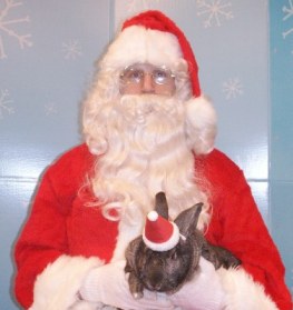 本人(本ウサ?)まったく動じず、静かにサンタに抱かれていましたが、
